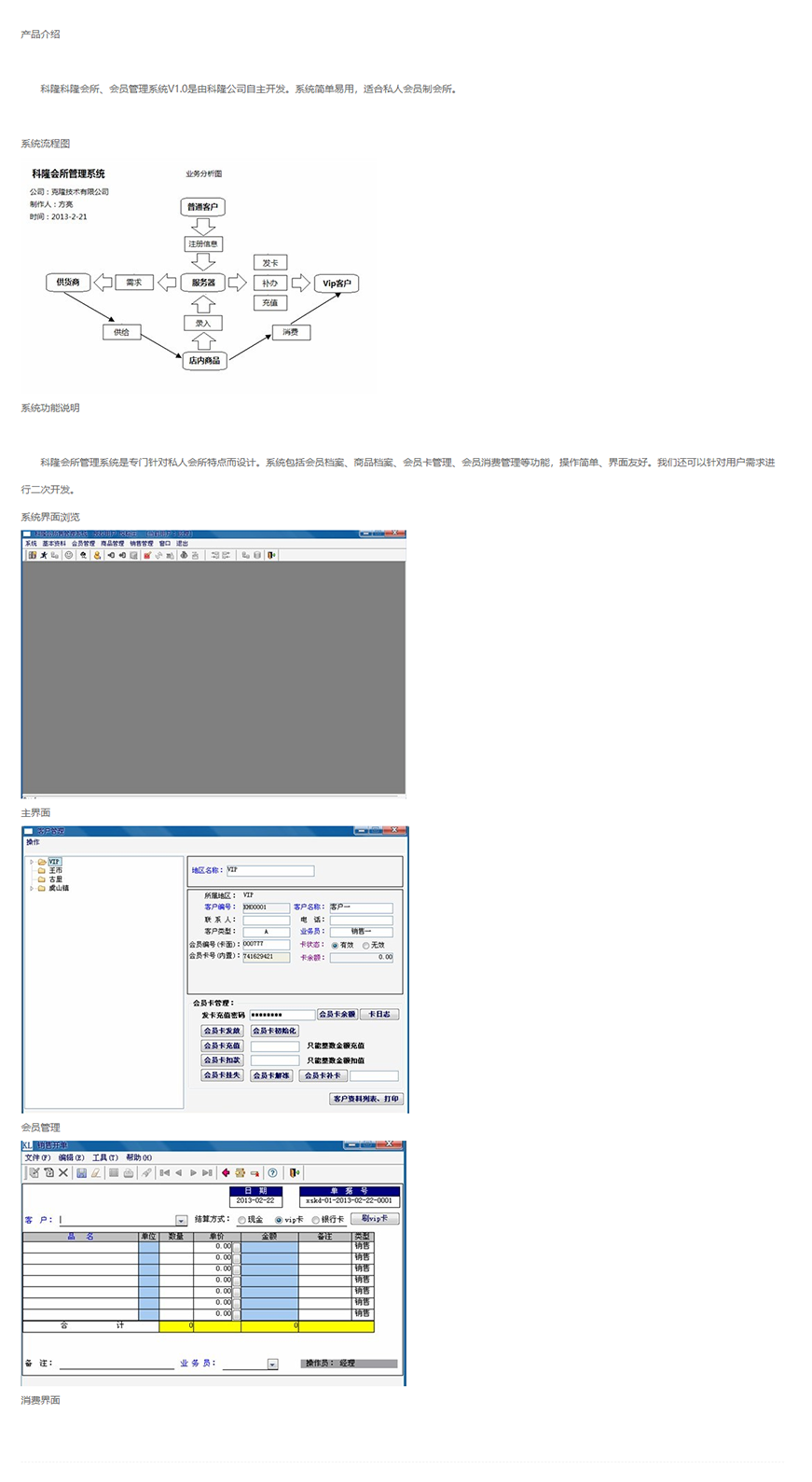 科隆科隆会所、会员管理系统V1.0是由科隆公司自主开发。系统简单易用,适合私人会员制会所。系统流程图系统功能说明科隆会所管理系统是专门针对私人会所特点而设计。系统包括会员档案、商品档案会员卡管理、会员消费管理等功能,操作简单、界面友好。我们还可以针对用户需求进.